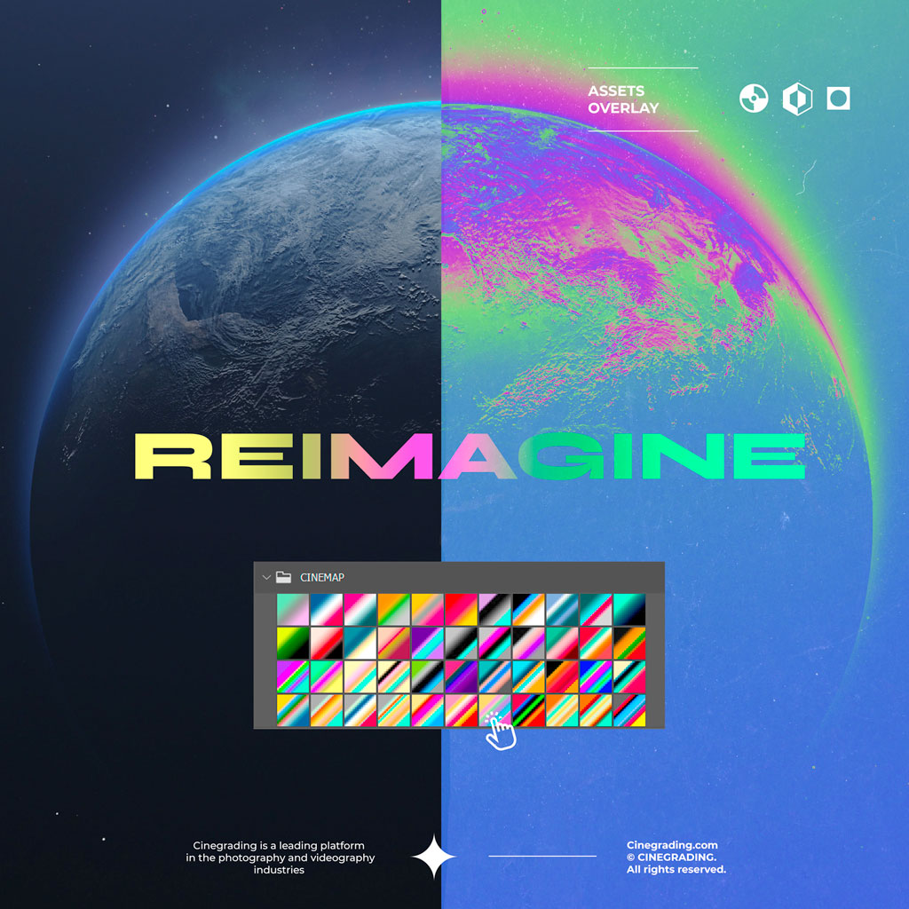 For our new +CineMap (Gradient Maps Preset) Pack, we carefully selected over 40 color presets so you can quickly and creatively re-map the colors on your photos and graphics with a single click. It’s easy to use, so you can focus on creating great images.